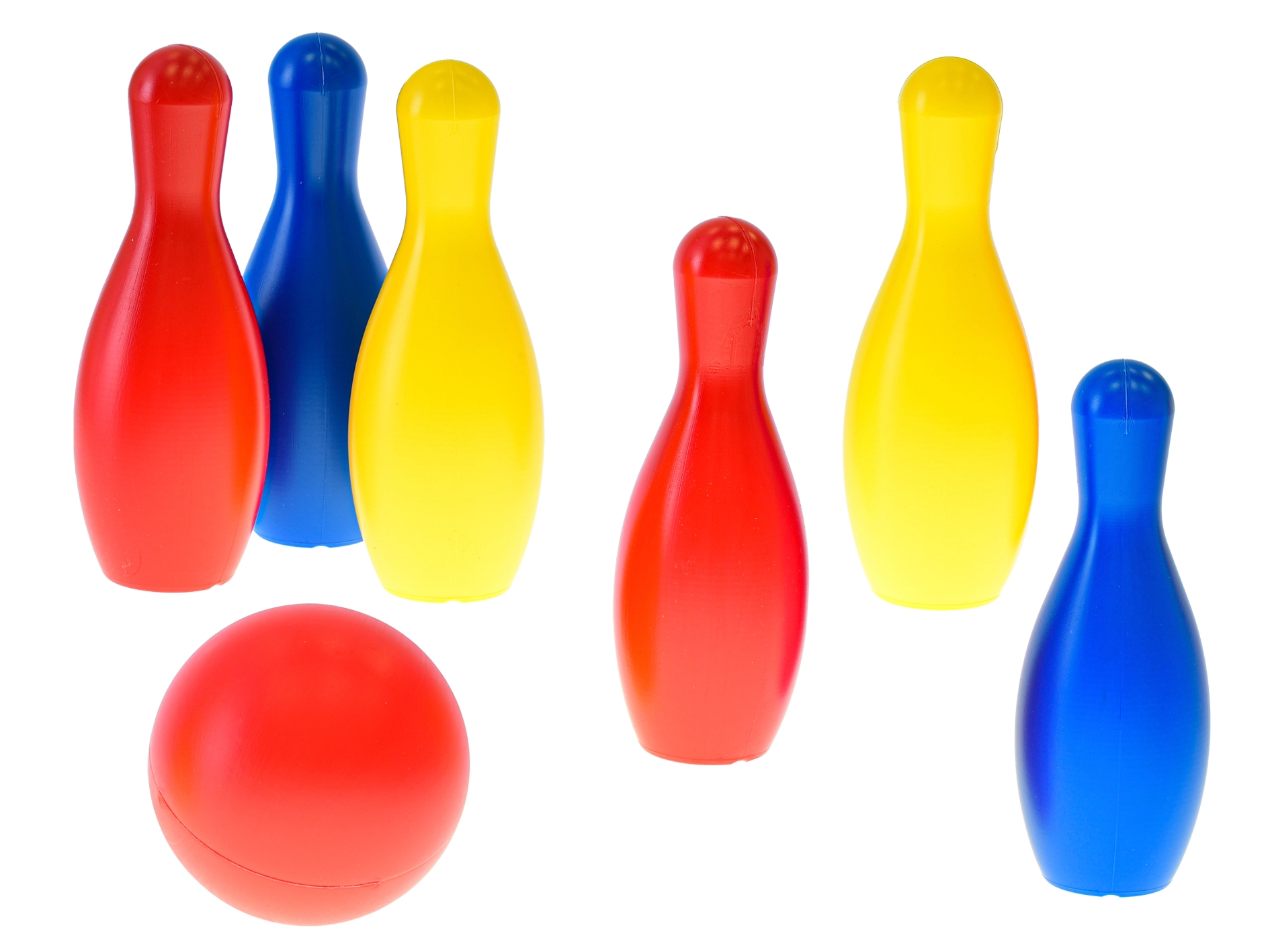 Keglji višine 19 cm iz trpežne, lahke plastike so primerni za otroke že od 10 mesecev. Gladke oblike in nizka teža omogočajo varno igro.