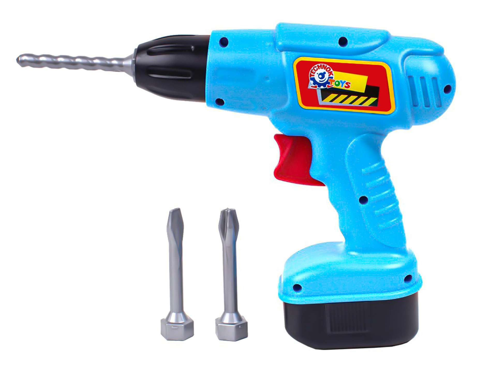 Del paketa so 3 izmenljivi svedri, ki jih je mogoče preprosto namestiti in menjavati glede na potek igre. Trpežna plastična izvedba je lahka in varna za otroke od 3. leta.