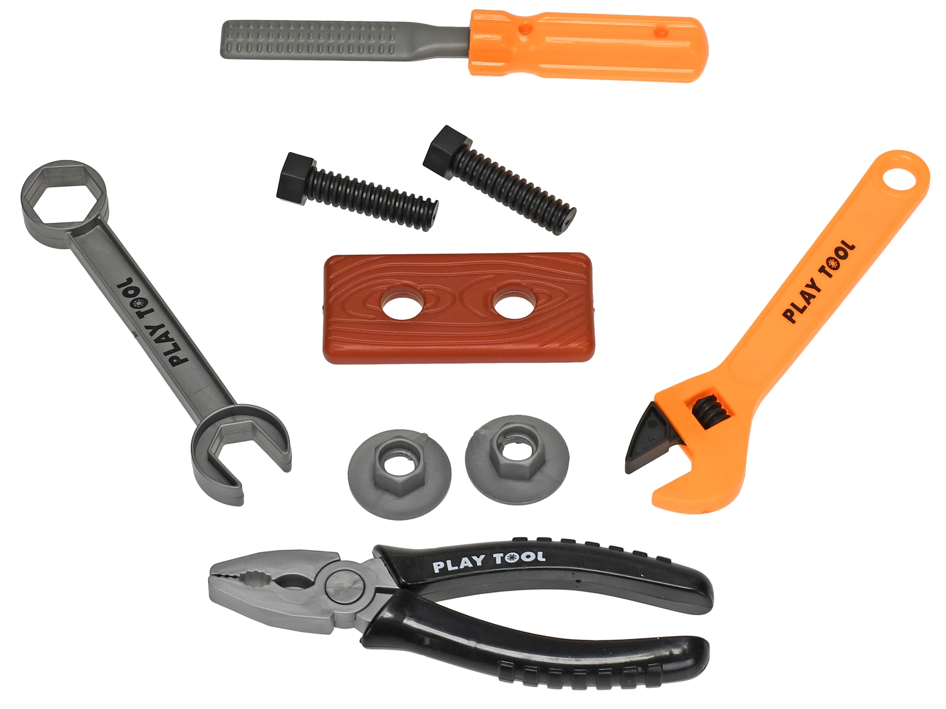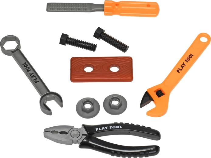 Ta otroški komplet orodja je idealen za male graditelje, ki želijo posnemati odrasle in se učiti novih veščin skozi igro. Devetdelni komplet vsebuje osnovna orodja za preprosta domača »popravila« in ustvarjanje.