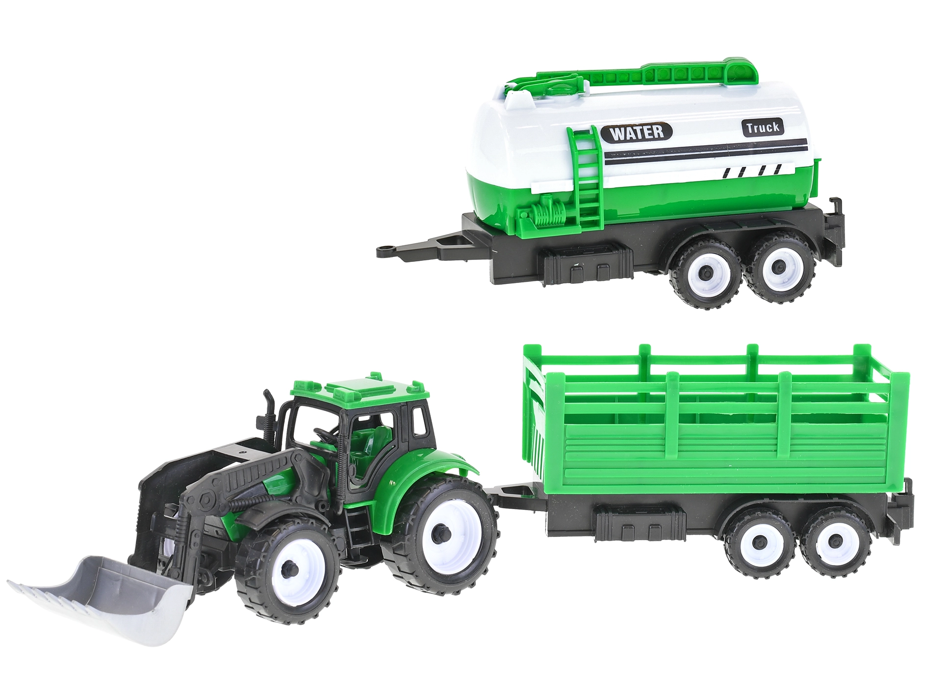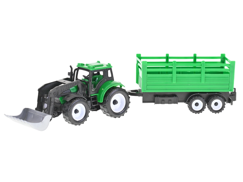 Realistični traktor nakladač z vztrajnikom prinaša pristno izkušnjo sveta kmetijske tehnike. Zaradi dolžine 17 cm se odlično prilega tudi manjšim rokam, robustna izdelava pa zdrži vsakodnevno igro. Del pakiranja sta 2 prikolici, ki ju je mogoče enostavno priklopiti in odklopiti, na izbiro pa so 3 vrste dodatkov – plug, bager in nakladač – za še več igralnih scenarijev.