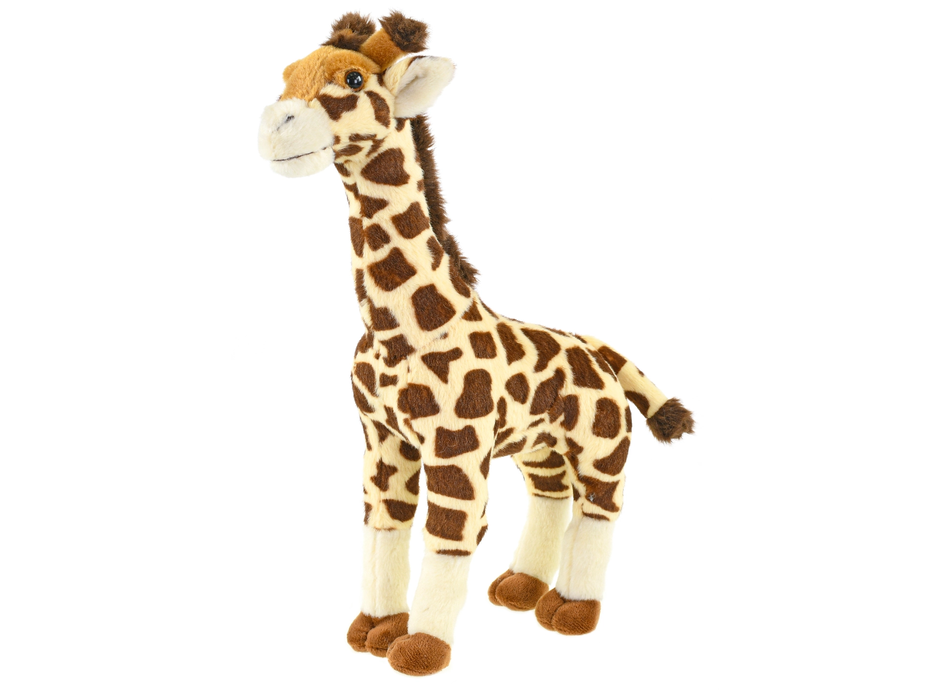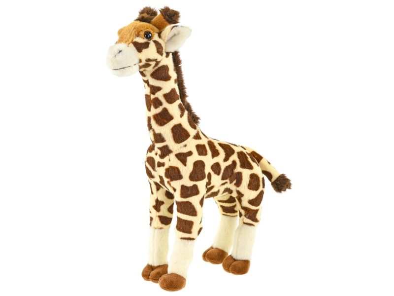 Ta stoječa plišasta žirafa je izdelana iz nežnega in varnega materiala, prijetnega na dotik. Zaradi uravnotežene zasnove lepo stoji ter vabi k igri in objemanju. Realistične podrobnosti – pege, rogi in griva – spodbujajo otroško domišljijo in spoznavanje živali.