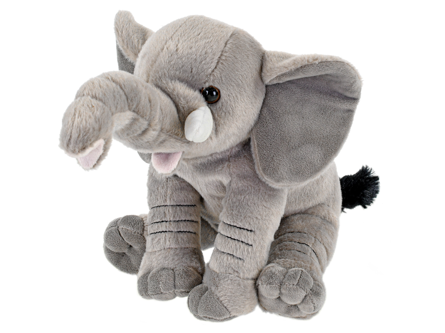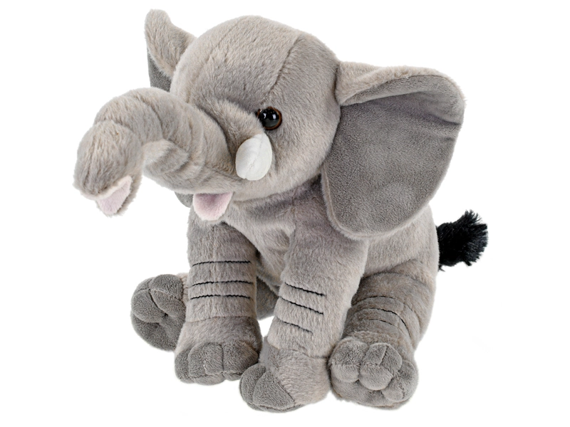 Ta siv plišasti slon s sedečo pozo, velikimi mehkimi ušeski in prikupnim ukrivljenim rilcem je izdelan iz izjemno prijetnega materiala, ki vabi k crkljanju. Zaradi kompaktne velikosti 20 cm se zlahka prilega v voziček, posteljico ali potovalno torbo.