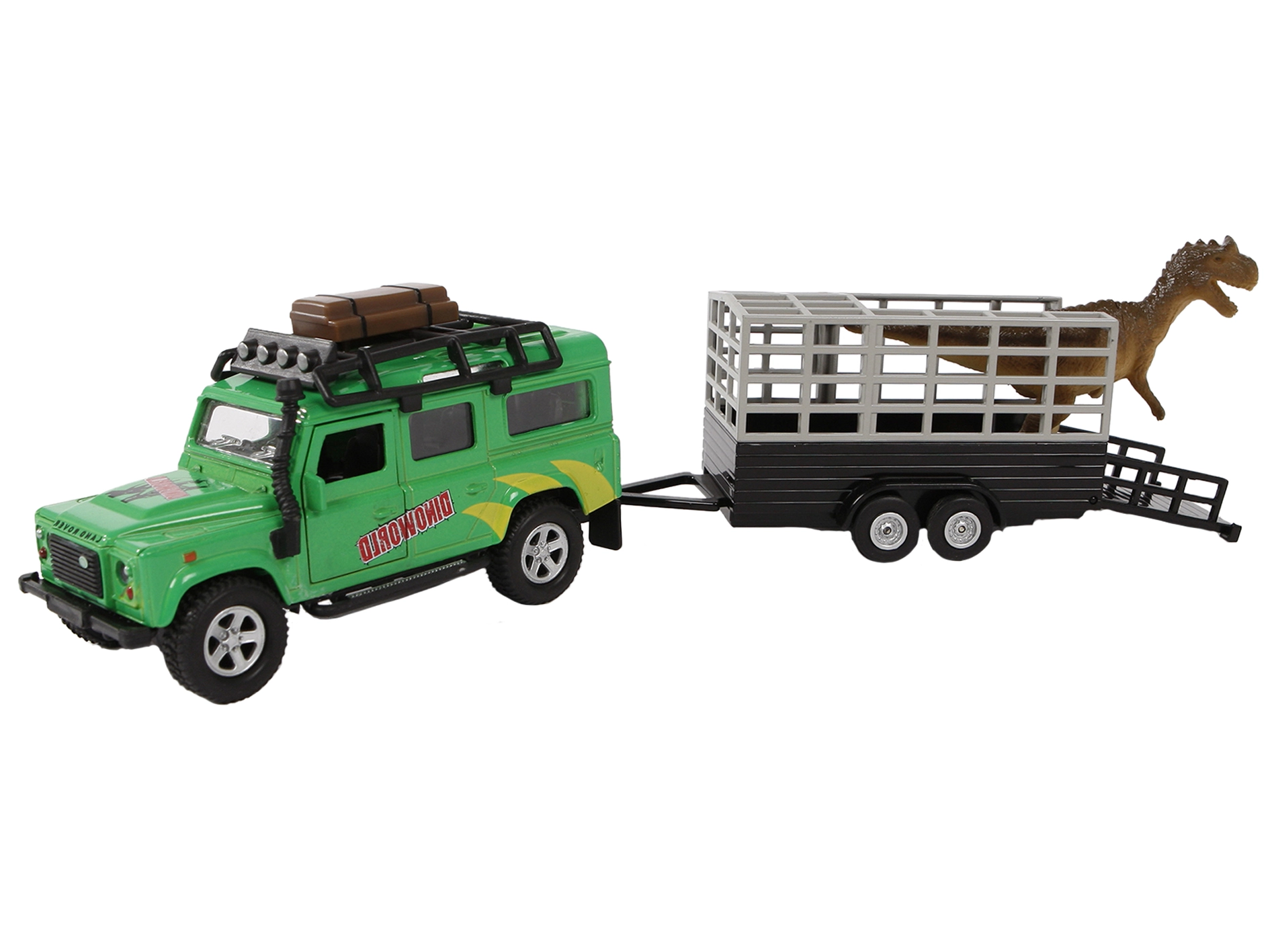 - Bogata oprema: prikolica s kletko in figurica dinozavra