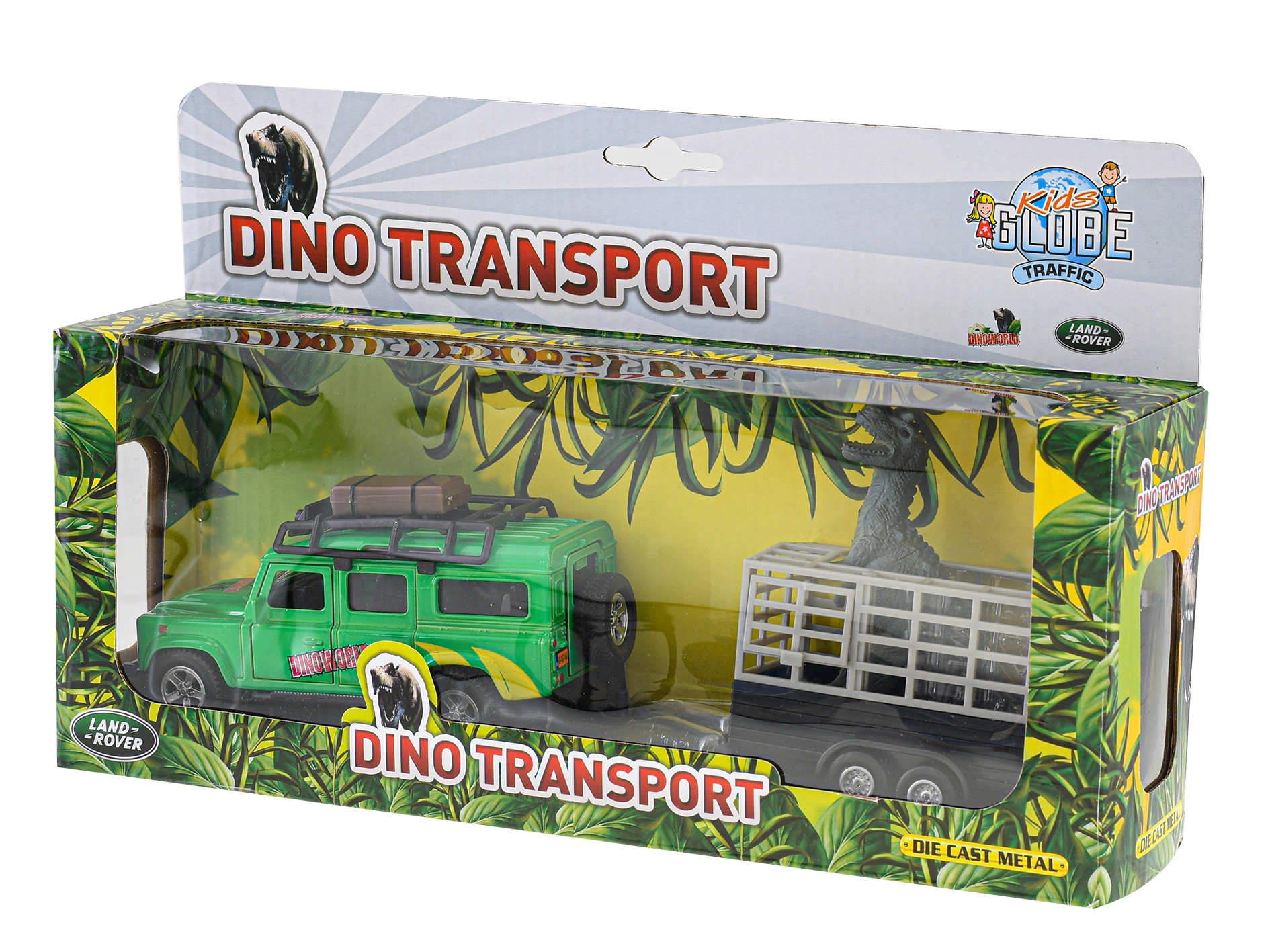 Podajte se na pustolovsko odpravo s terenskim avtom Kids Globe Traffic! Kovinski model LAND ROVER dolžine 28 cm vozi na vzvratni pogon, ima odpirajoča se sprednja vrata, strešni prostor za opremo ter prikolico s kletko in figurico dinozavra – idealno za otroke, ki imajo radi avtomobile in prazgodovinski svet.