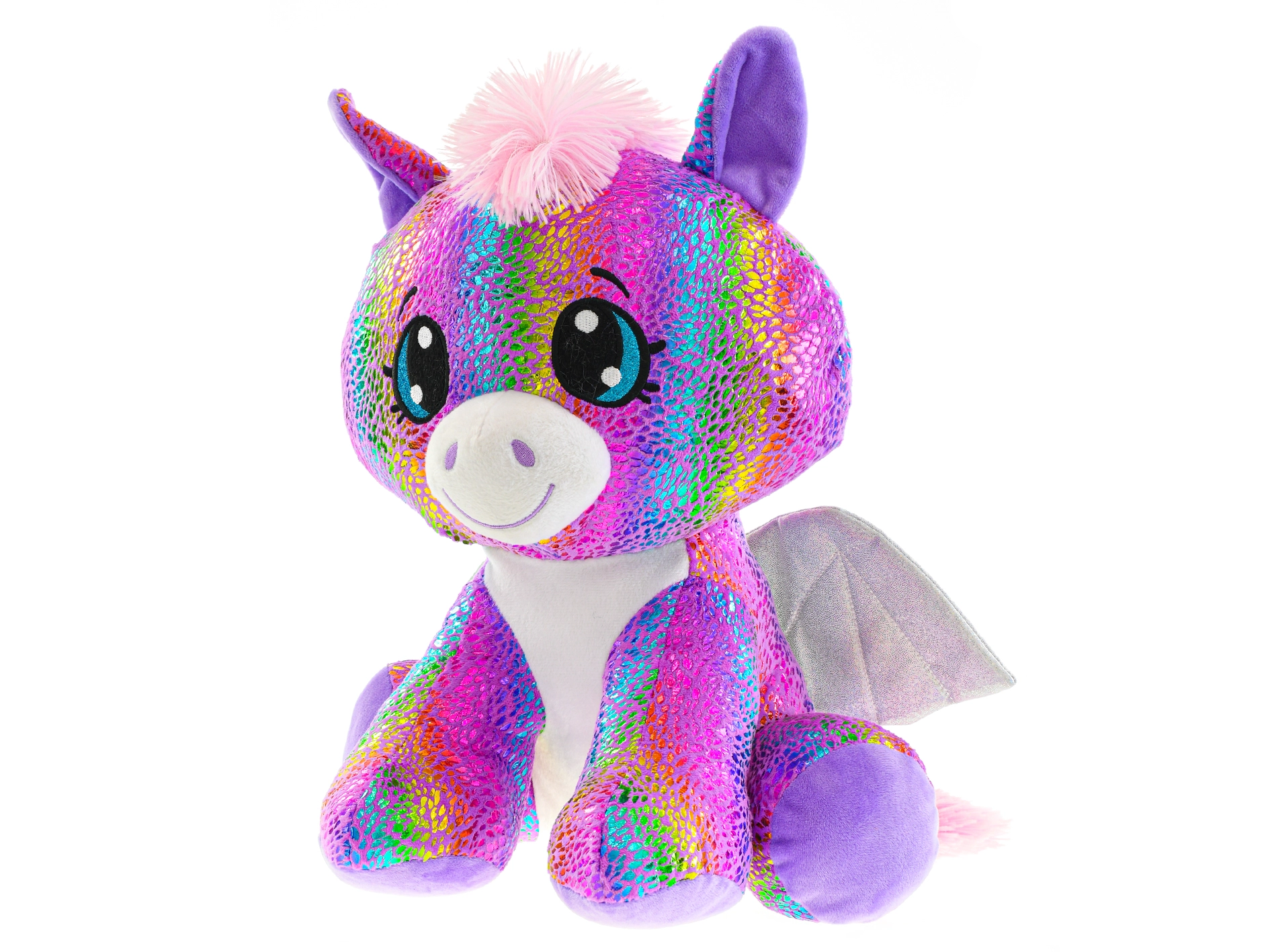 Ta pisani pegas prinaša otrokom čarobnost domišljije in nežno tolažbo v enem. Izdelan je iz mehkega pliša z bleščečimi zvezdicami in mavričnimi učinki, ki navdušijo vsakega malega ljubitelja čarobnih bitij. Sedeča oblika zagotavlja stabilnost in enostavno razstavljanje na polici ali nočni omarici.