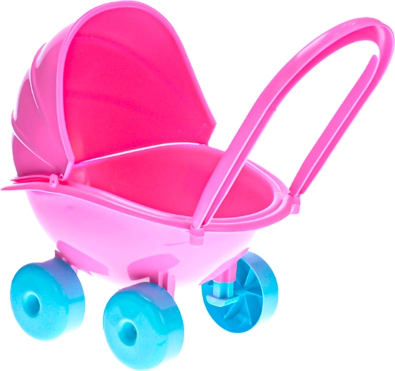 Ljubek rožnat voziček bo razveselil vsako malo mamico. Je preprosto sestavljiv, izdelan iz trdne in odporne plastike in ima gladko površino, zato je enostaven za čiščenje. Srednji del lahko uporabite tudi kot banjico za kopanje punčke.