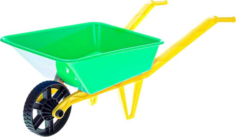 Otroški samokolniček za pesek je odličen pomočnik za male vrtnarje in graditelje. Zaradi lahkega plastičnega ogrodja se zlahka potiska tudi polno naložen in zmore prevažati pesek, kamenčke ali druge drobnarije. Privlačna kombinacija zelene kadice in rumenega ogrodja otroke pritegne na prvi pogled.