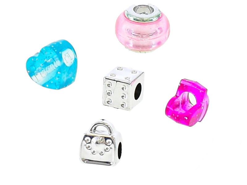 Perlice in obeski z velikimi odprtinami omogočajo otrokom hitro spreminjanje videza zapestnice ter ustvarjanje izvirnih kombinacij brez pomoči odraslih.