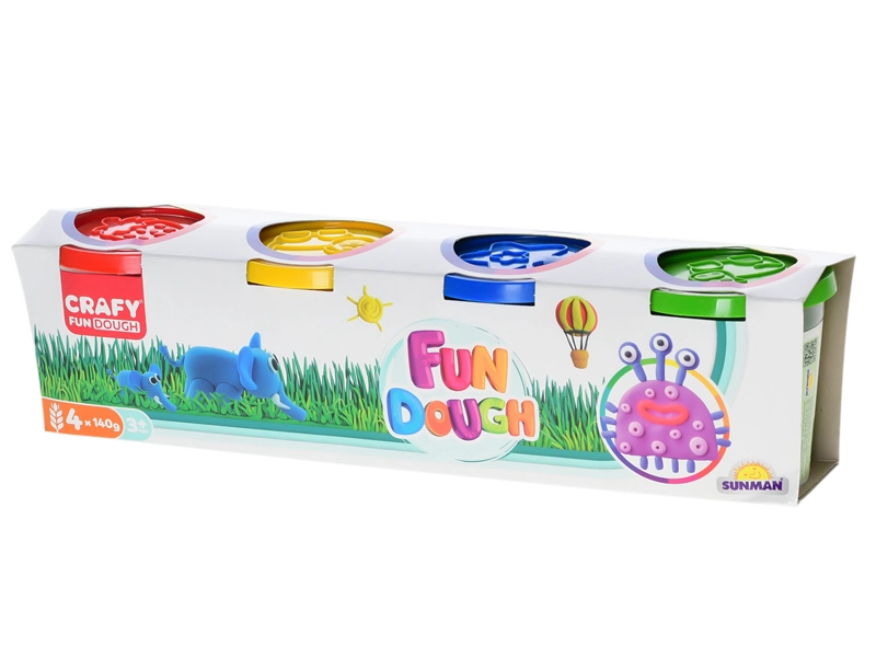 Ta barvit komplet modelirne mase prinaša otrokom ure ustvarjalne zabave. Štirje lončki v različnih odtenkih ponujajo dovolj materiala za oblikovanje figure, živalic in črk. Praktični pokrovčki z izsekovalniki omogočajo otrokom enostavno iztiskanje oblik in okraševanje izdelkov brez dodatnih pripomočkov.