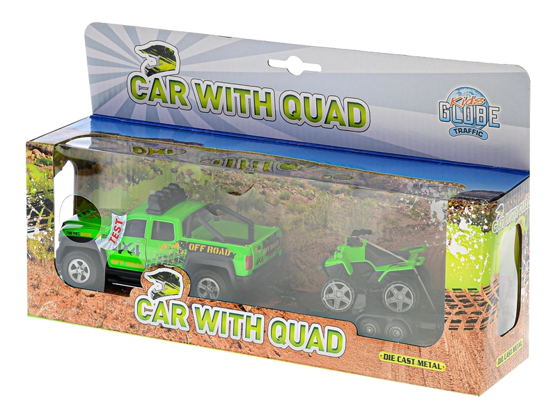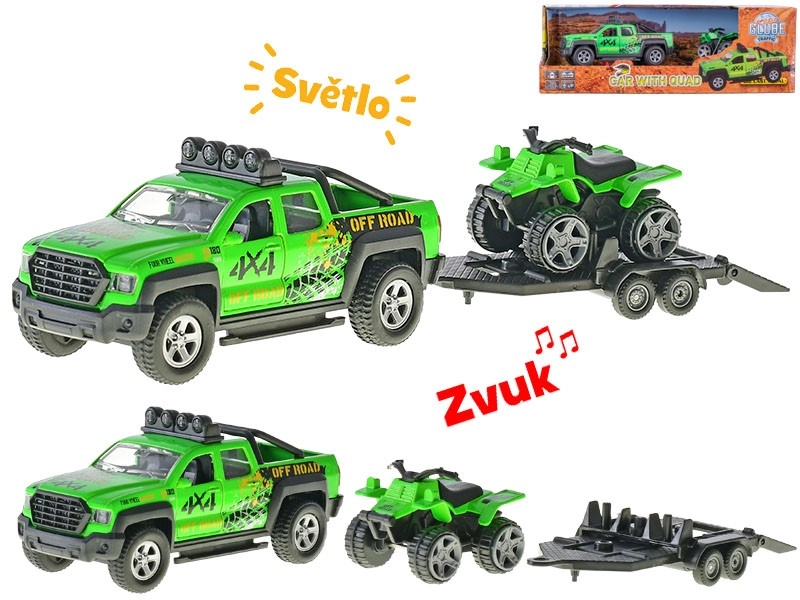 - Popoln igralni set: avto + prikolica + štirikolesnik + baterije