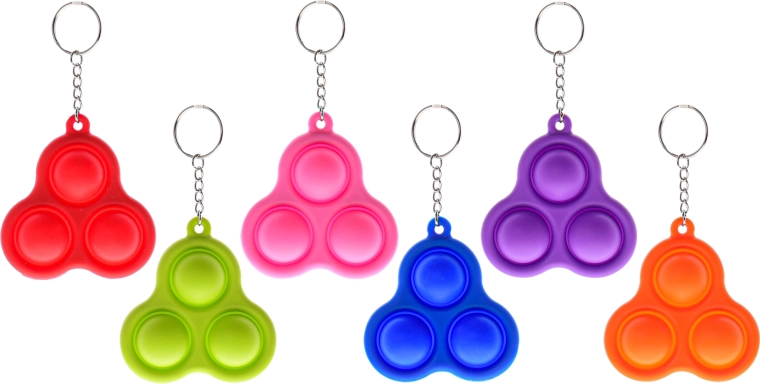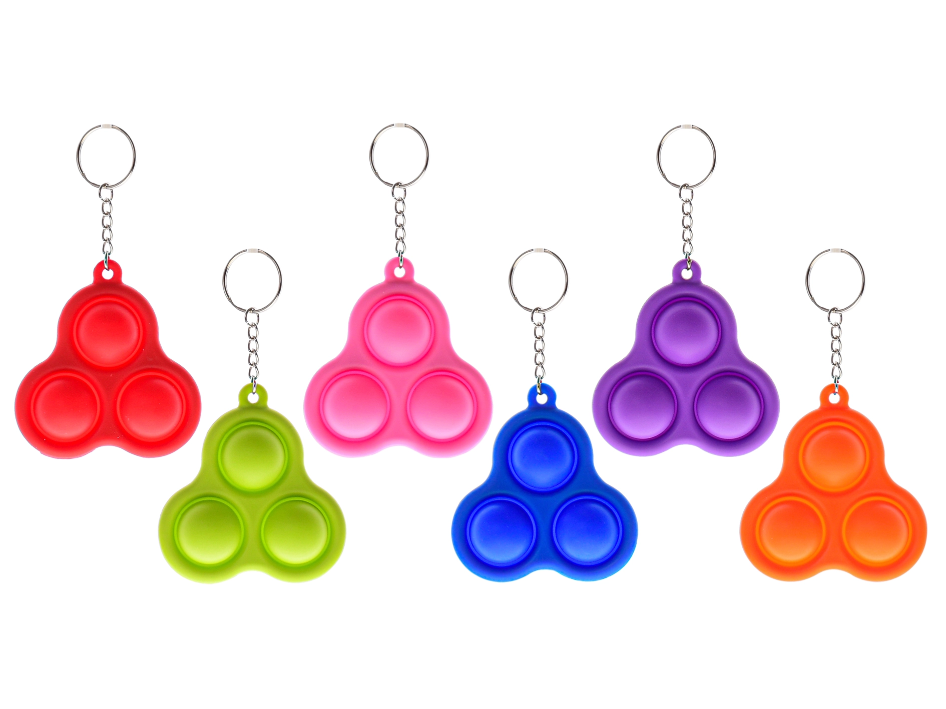Znebite se stresa kadarkoli in kjerkoli s praktičnim obeskom Plop up! Kompaktno antistresno pripomočko velikosti 8,2 cm se zlahka pripne na ključe ali nahrbtnik in je na voljo v 6 izrazitih barvah – vijolična, rdeča, modra, rožnata, zelena in oranžna.