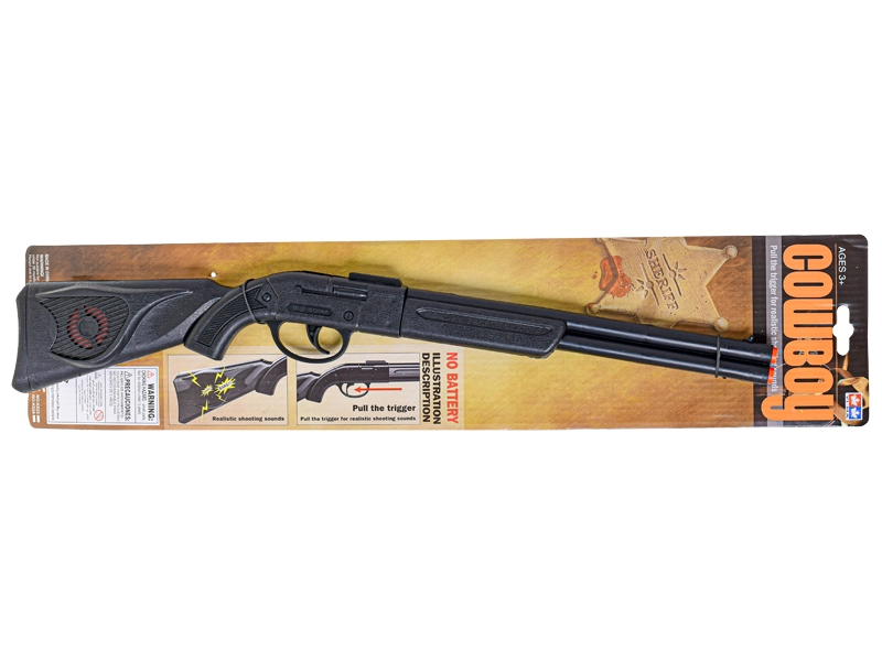 Privoščite otrokom pustolovščino Divjega zahoda s to kavbojsko klapajočo puško dolžine 50 cm. Lahka in preprosta za upravljanje igrača iz trpežne plastike v črni barvi ob pritisku na sprožilec oddaja avtentičen klapajoč zvok, ki še poudari igro kavbojev. Primerna od 3. leta dalje, praktično pakirana na kartici.