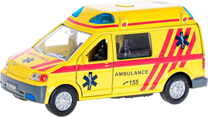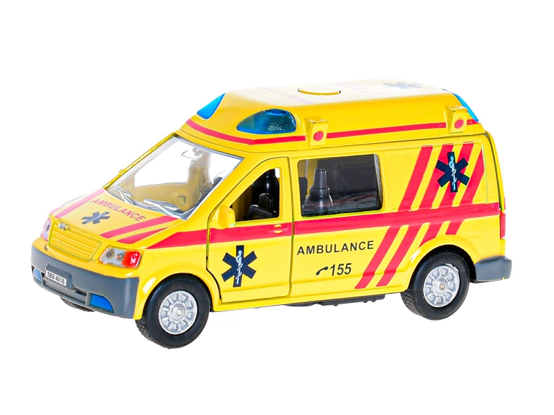 Odkrijte realističen model reševalnega vozila za male reševalce: podrobna izdelava, 14 cm, kovina in plastika, pull-back pogon za hitro vožnjo naprej ter svetlobni in zvočni učinki kot prava sirena. Odpirajoča se sprednja in zadnja vrata spodbujajo domišljijo, igrača pa je zahvaljujoč baterijam v paketu pripravljena za igro takoj po razpakiranju.