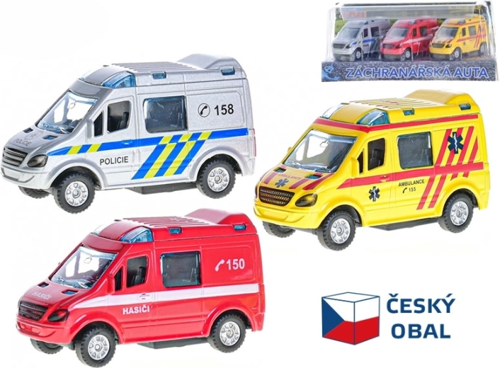 Set 2-Play Traffic prinaša trojico priljubljenih reševalnih vozil dolžine 8 cm: gasilsko vozilo, policijski avto in rešilca. Zahvaljujoč čvrsti zasnovi iz kovine s plastičnimi elementi prenese tudi bolj dinamično igro, navduši pa z realističnim videzom z češkimi napisi in barvno izvedbo po resničnih predlogah.