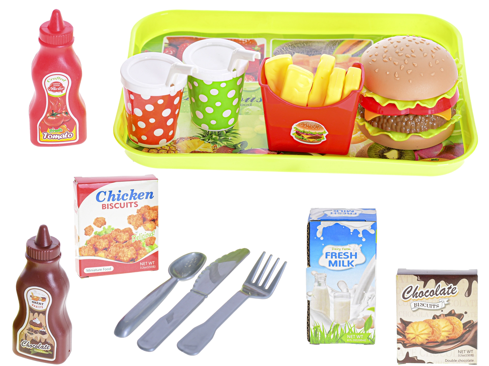 Komplet hitre prehrane otrokom prinaša avtentično izkušnjo priprave in serviranja priljubljenih jedi. Realistične oblike in barve vabijo h kreativni igri, medtem ko trpežna plastika zagotavlja varnost in enostavno vzdrževanje.
