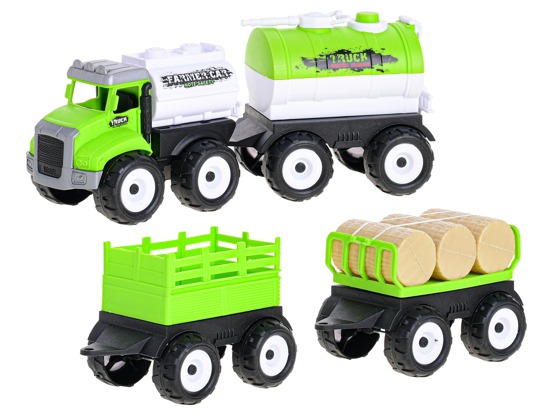 V paketu so kar tri prikolice, ki širijo možnosti igre: cisterna za prevoz tekočin, prikolica za les in vsestranski keson. Otroci lahko ustvarjajo raznolike scenarije ter naravno razvijajo logično razmišljanje in domišljijo.