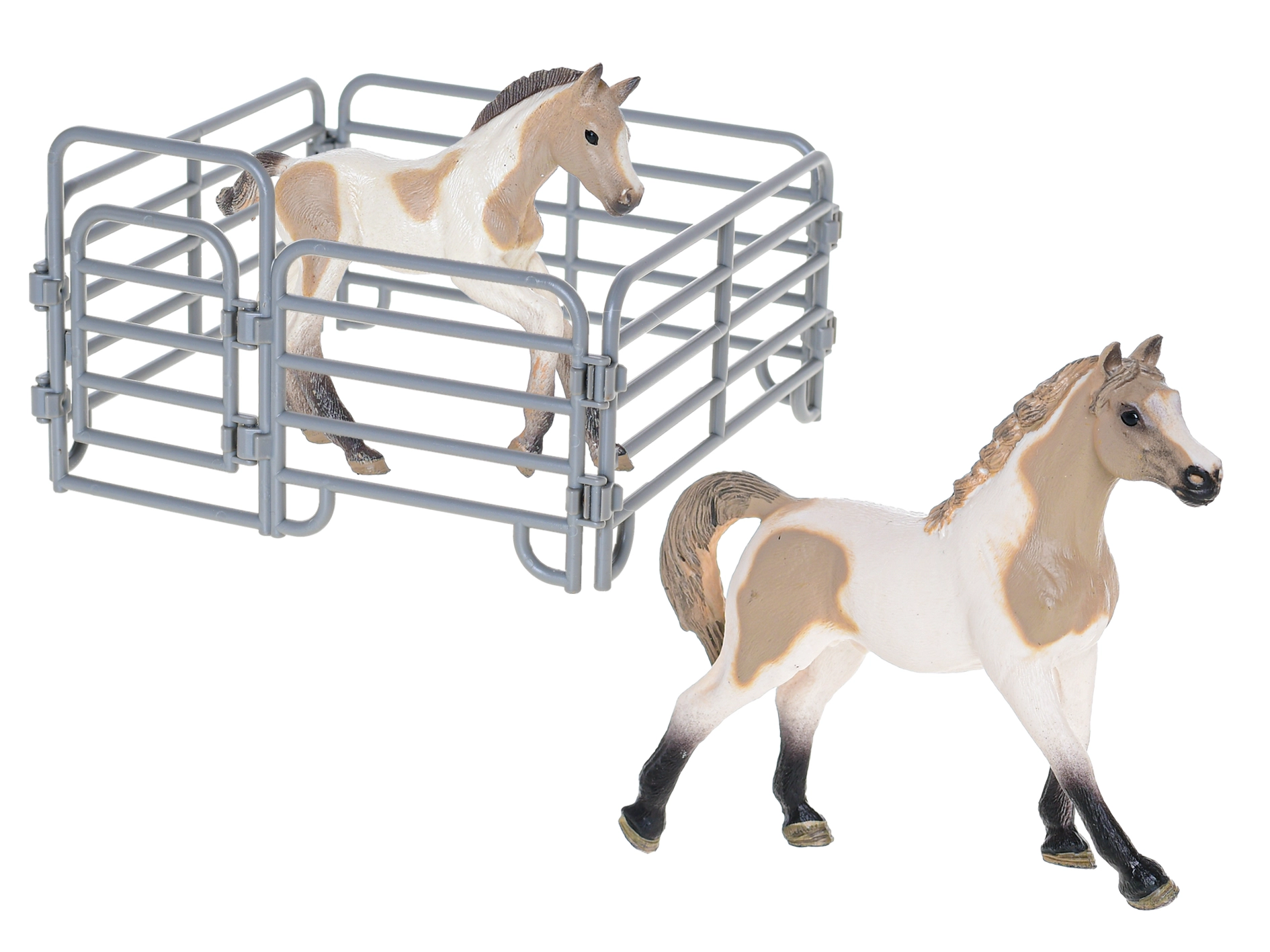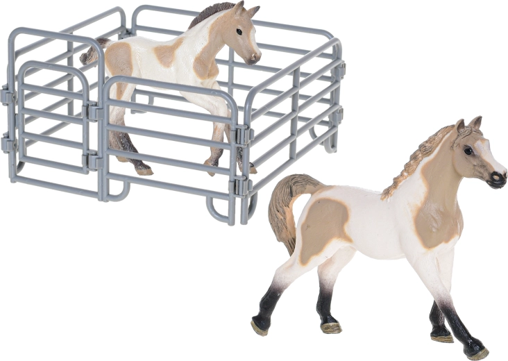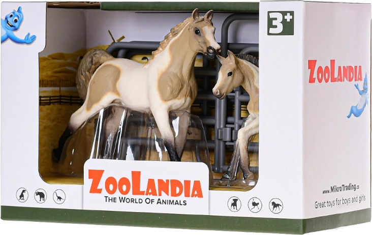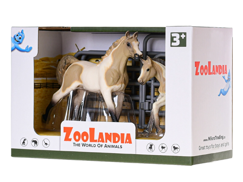 Ta komplet figur iz kolekcije Zoolandia otrokom ponuja možnost, da ustvarijo svojo lastno kmetijo. Konj z žrebetom je dopolnjen s tematskimi dodatki, ki širijo možnosti igre ter razvijajo domišljijo, fino motoriko in odnos do narave. Realistični detajli in trpežna plastična izdelava zagotavljajo dolgotrajno zabavo.