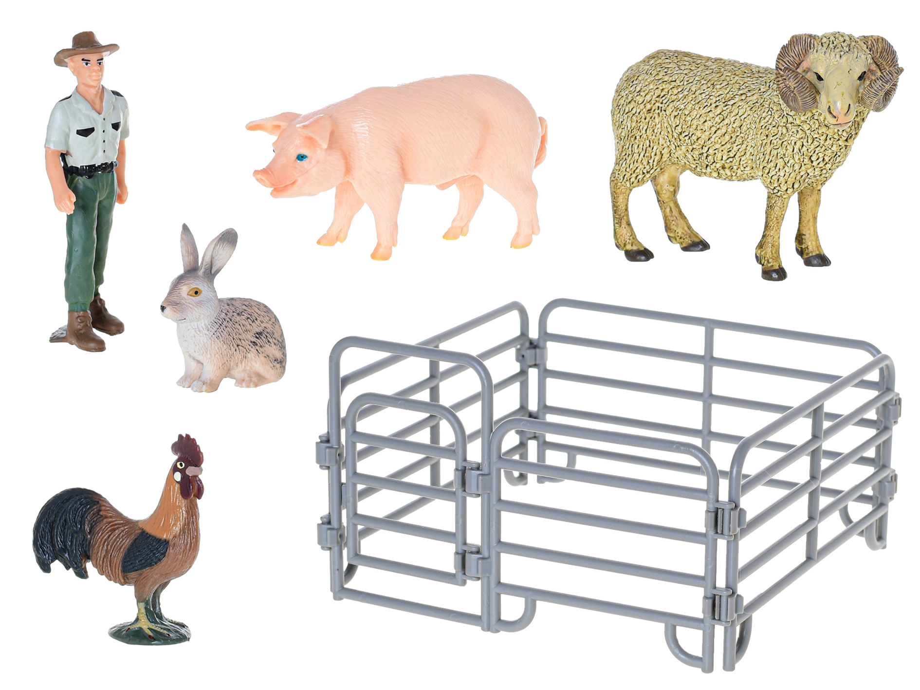 Oven z izrazitimi zavitimi rogovi in prašič z dovršeno poslikavo spodbujata domišljijsko igro in se odlično podata tudi v zbirko domačih živali.