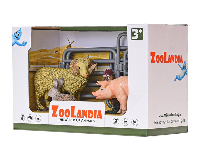 Komplet »Zoolandia – oven in prašič z dodatki« otrokom prinaša pristno doživetje kmetije. Figure iz trpežne plastike imajo podrobno izdelano dlako in barvne detajle, samostojno stojijo ter so odlične za samostojno igro ali razširitev zbirke domačih živali.