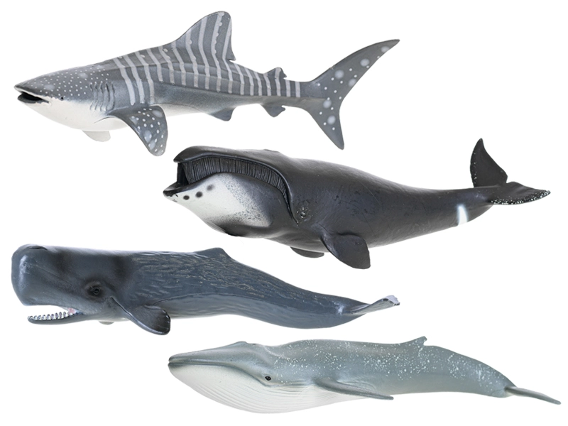 Vsaka figurica prikazuje značilne poteze vrste – od zob vorvaňa do mogočnih plavuti sinjega kita. Odlično za igro in učenje.