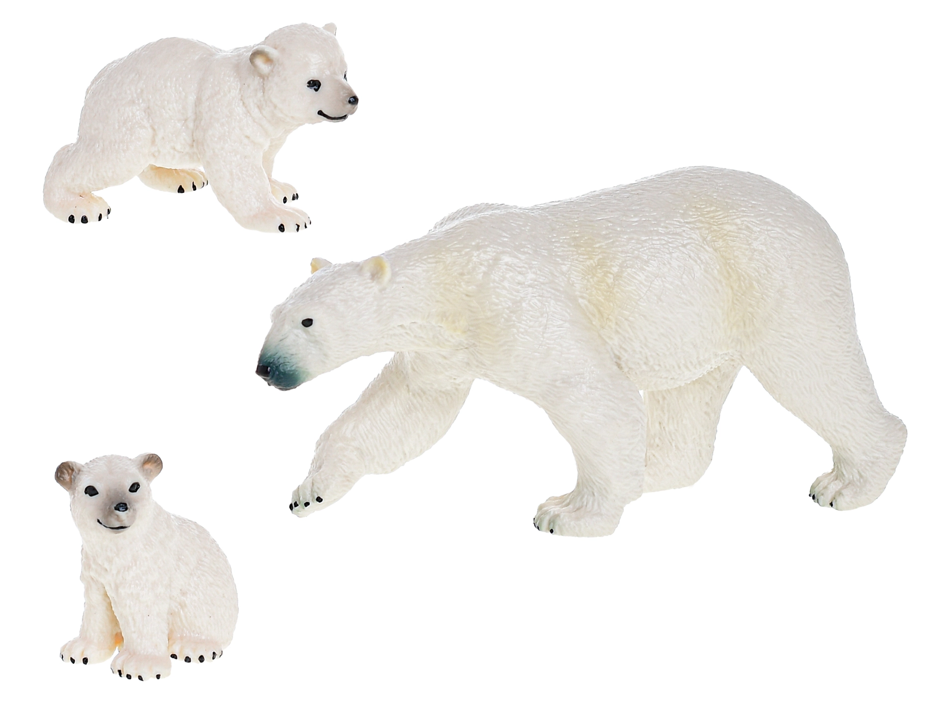 Podrobne teksture kožuha, oblika smrčka in tačk naredijo figurice verne modele polarnih medvedov – idealne za igro in izobraževalne aktivnosti.