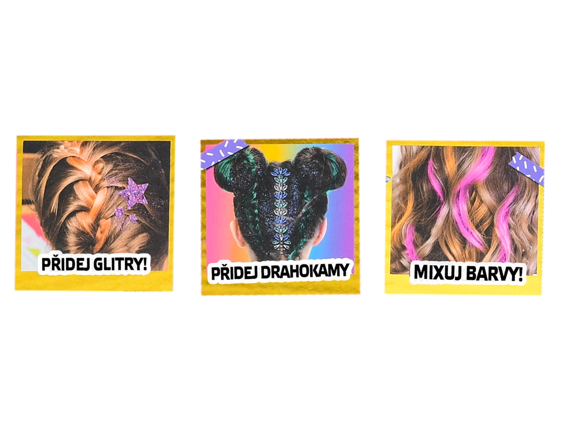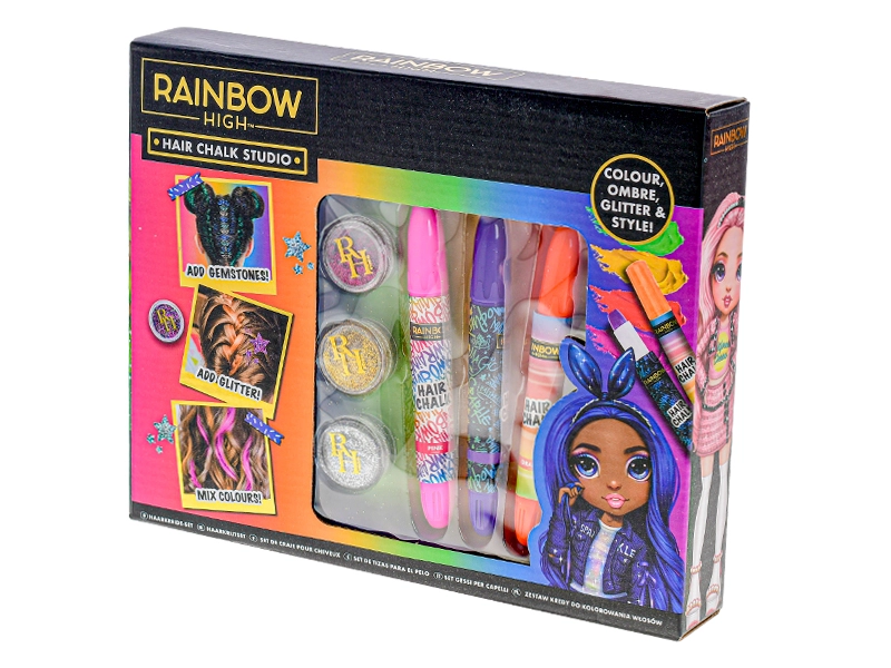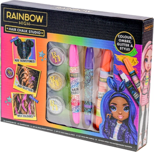 Popolno za oboževalke RAINBOW HIGH, otroške zabave in ustvarjalna popoldneva. Komplet je odlična ideja za darilo in prinaša veliko zabave brez trajnih posegov v lase.