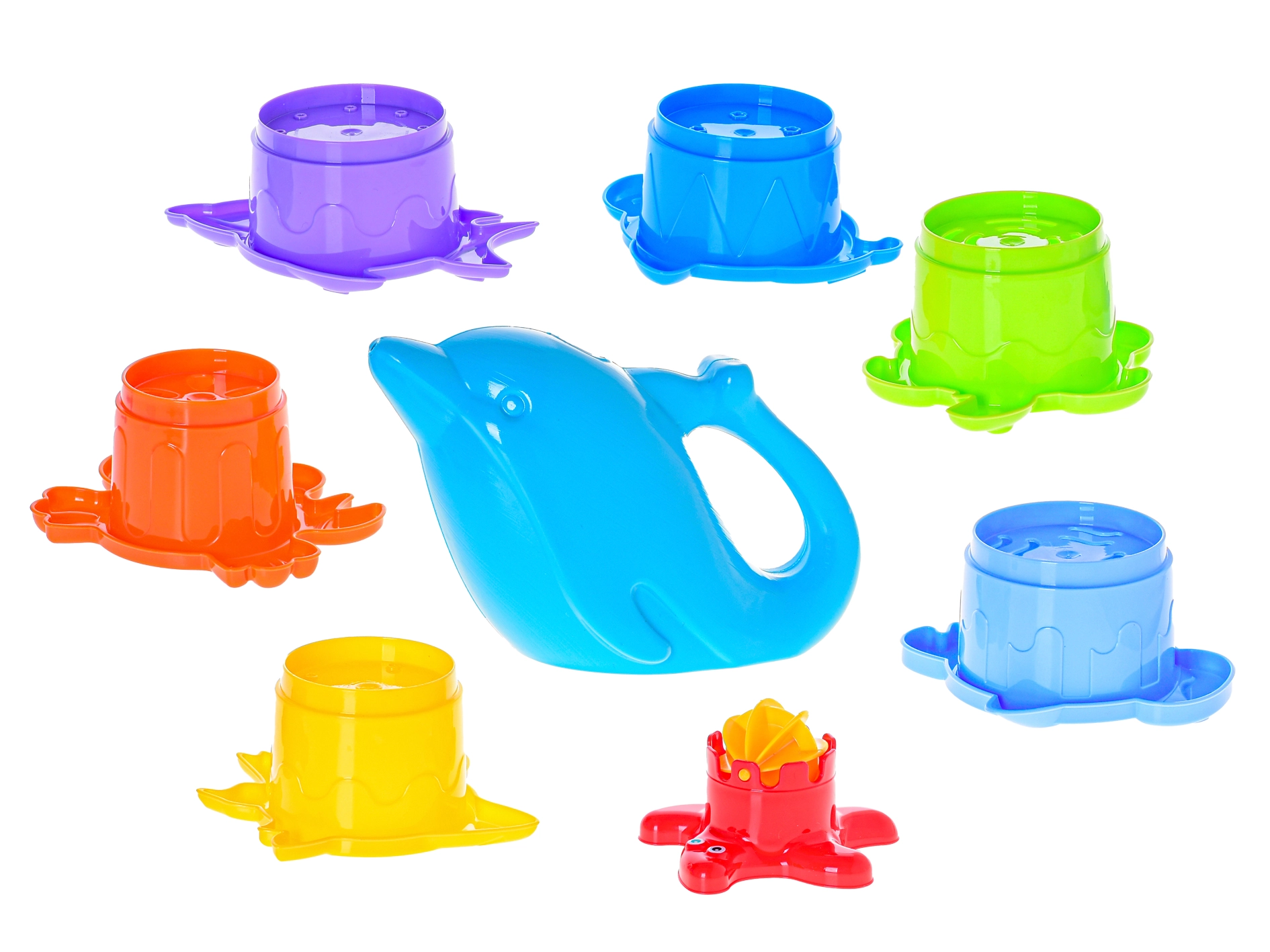 Prisrčna zalivalka v obliki delfina olajša zalivanje peščenih tortic, vrtenje turbine in vodne eksperimente v kadi.