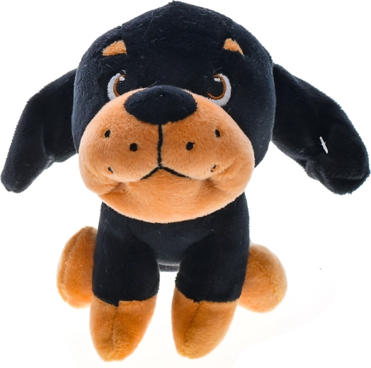 Plišasti kužek v sedečem položaju prinaša otrokom veselje, pomiritev in spodbuja domišljijo pri igri. Izdelan je iz kakovostnega, žametno mehkega pliša, zato je prijeten za crkljanje in idealen kot sopotnik na poti ali za miren spanec. Zaradi kompaktnih mer se zlahka prenaša in se prilega tudi v voziček ali nahrbtnik.