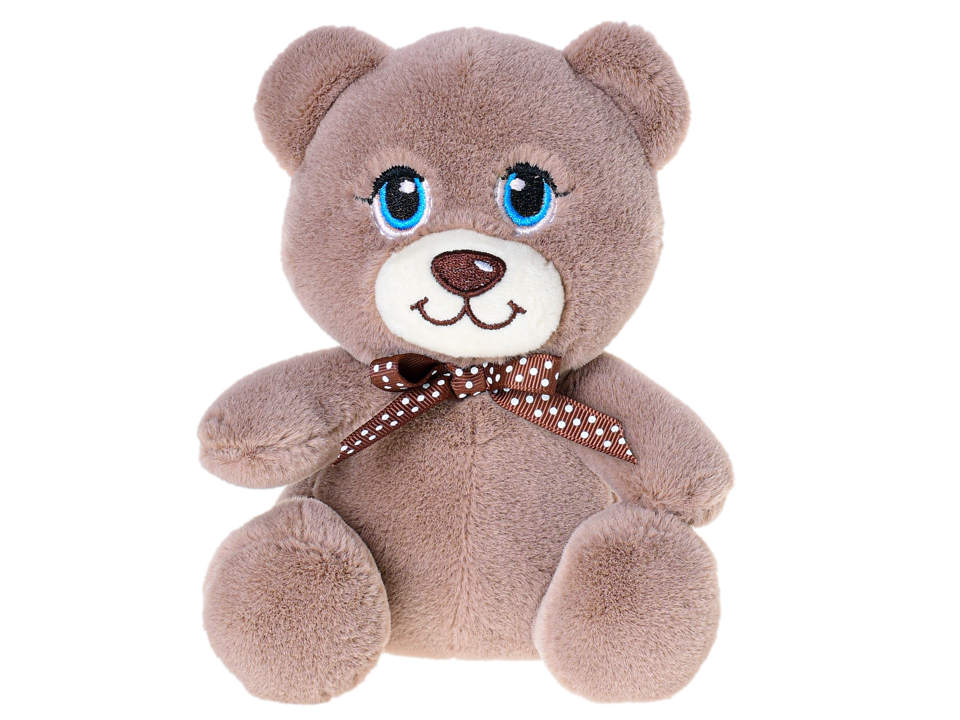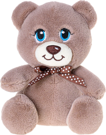 Prisrčna plišasta živalica velikosti 15 cm je idealna spremljevalka za dojenčke in malčke. Zahvaljujoč mehki plišasti tkanini, rjavi mašnici na vratu in izrazitim očem vabi k crkljanju ter prinaša občutek varnosti in veselja.