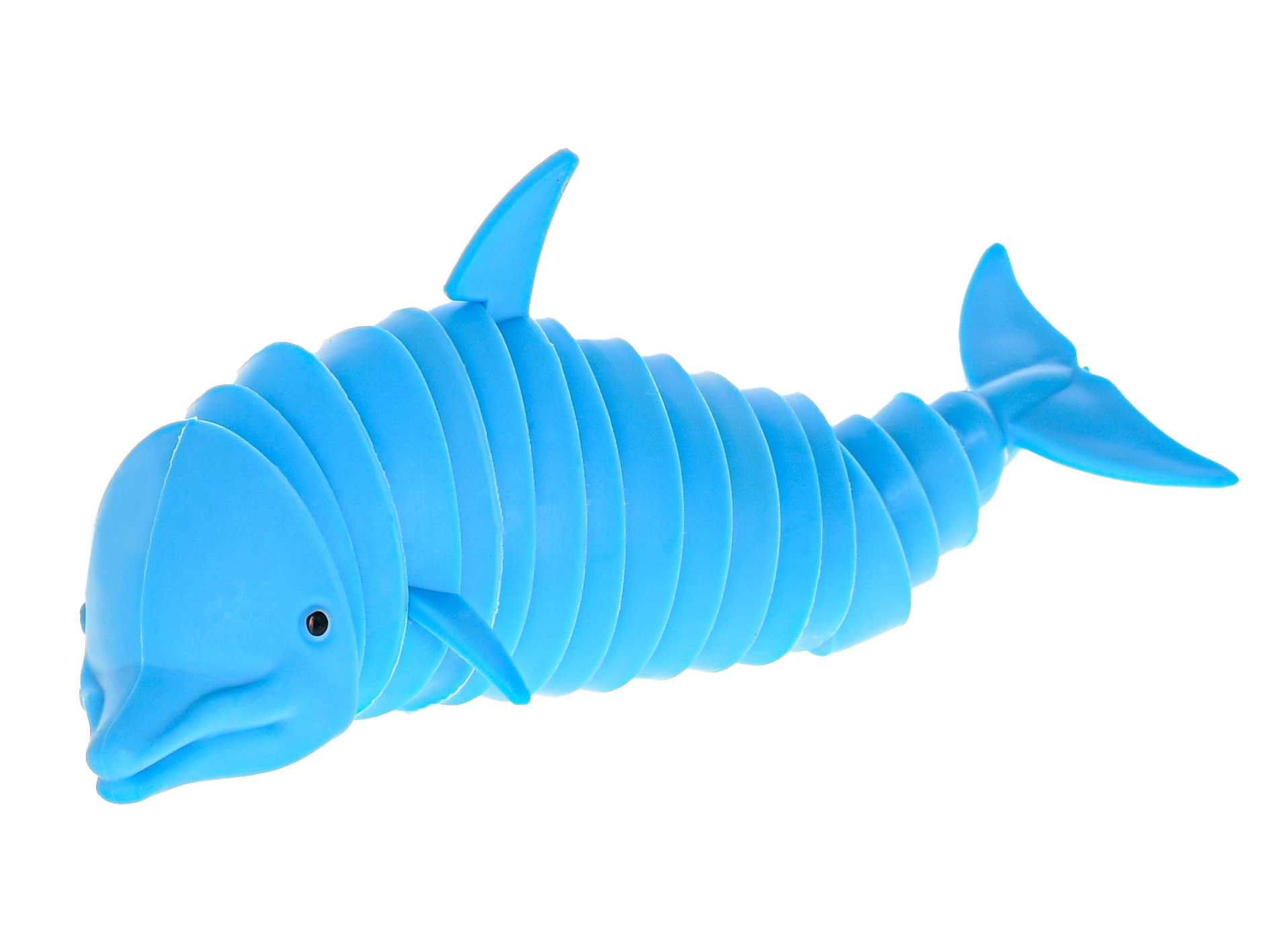 Zabavna antistresna igrača v obliki delfina in morskega psa z mehanizmom klik klak prinaša takojšnje sproščanje napetosti in skrajša dolgčas. Zaradi kompaktne velikosti 17 cm udobno sede v dlan, je lahka, vzdržljiva in primerna za fantke in punčke. Na voljo v dveh barvah.