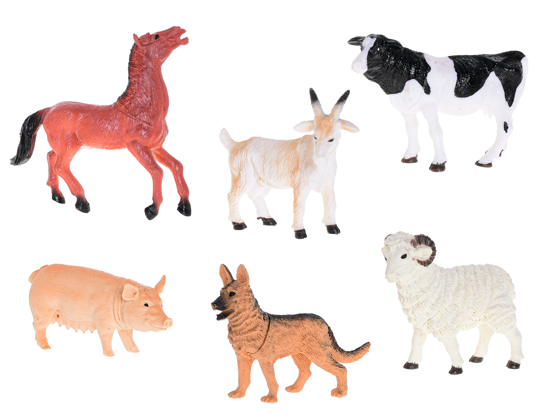 Odkrijte svet podeželja s tem setom plastičnih figuric kmečkih živali. Vsebuje 6 podrobno izdelanih figuric – prašiča, kozo, ovna, konja, psa in kravo. Figurice velikosti 10–14 cm so izdelane iz kakovostne in trpežne plastike, idealne za otroke od 3 let. Spodbujajo domišljijo, realistično igro in razvoj fine motorike.