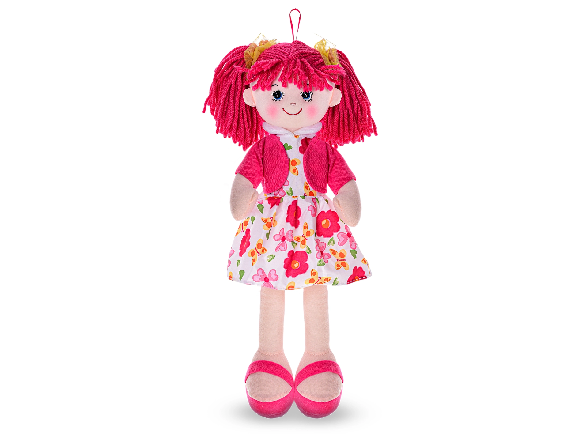 Punčka je izdelana iz mehkega tekstila, prijetna na dotik in varna za dojenčke. Z rdečim oblačilom pritegne na prvi pogled ter postane priljubljena prijateljica za voziček in posteljico. Baterije (3× AG13) so že priložene, zato je punčka pripravljena za takojšnjo uporabo.