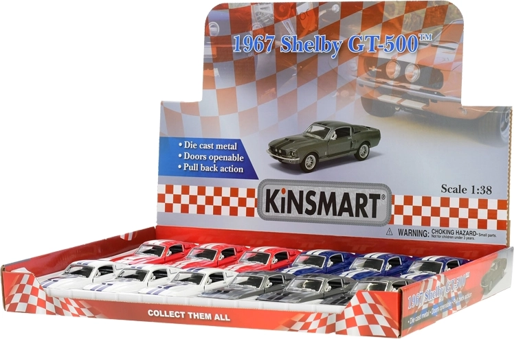 Kovinski model avtomobila Ford Shelby GT500 1967 1:38 z odpirajočimi se vrati in pull-back mehanizmom