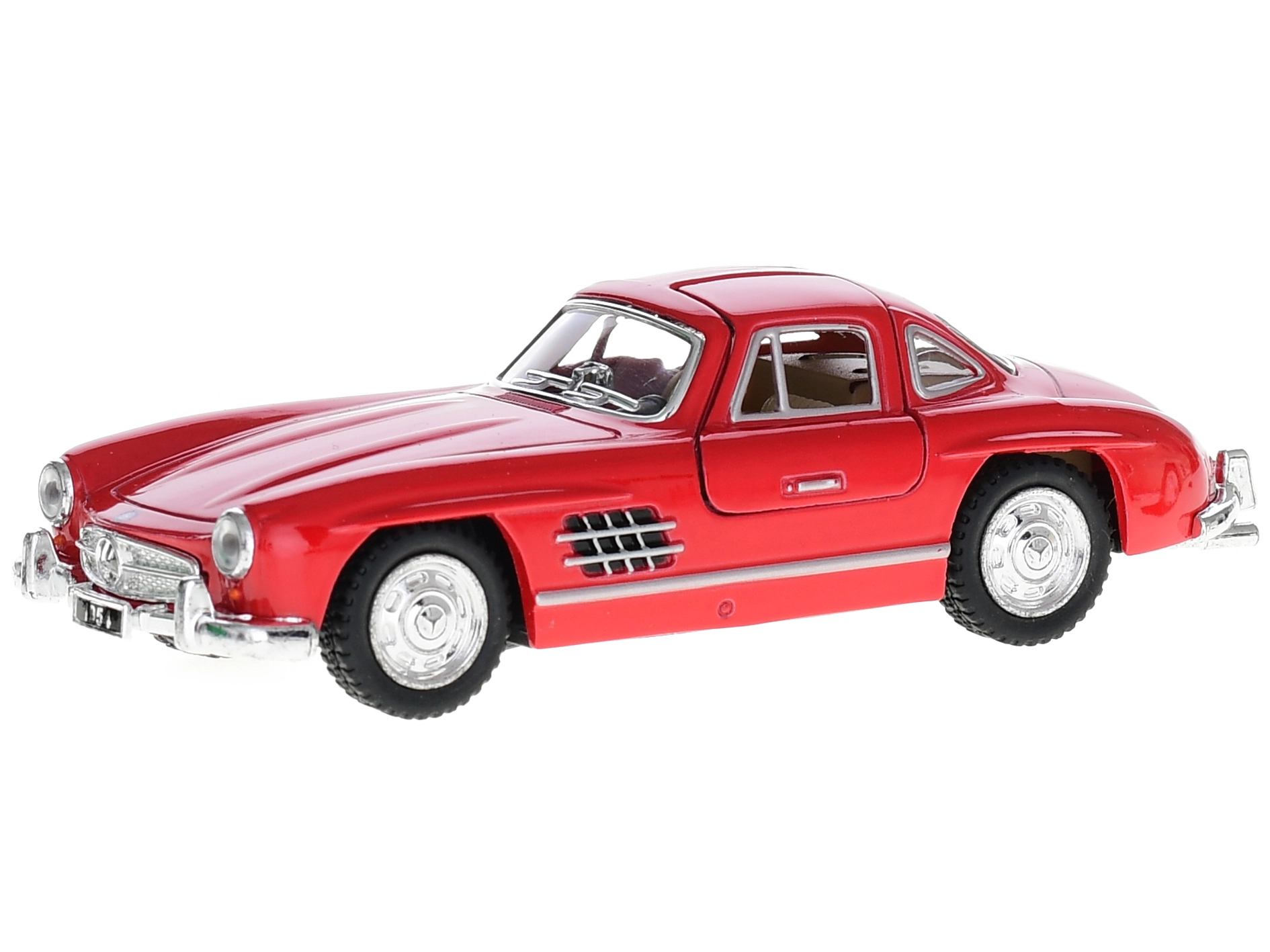 Kovinski model avtomobila Mercedes‑Benz 300 SL iz leta 1954 zvesto povzema ikonično zasnovo s prepoznavnimi “gullwing” vrati. Zaradi podrobne izdelave in kakovostnih materialov deluje realistično in hkrati vzdržljivo. Praktični povratni vzmetni pogon poskrbi za zabavo in dinamično premikanje po potegu nazaj.
