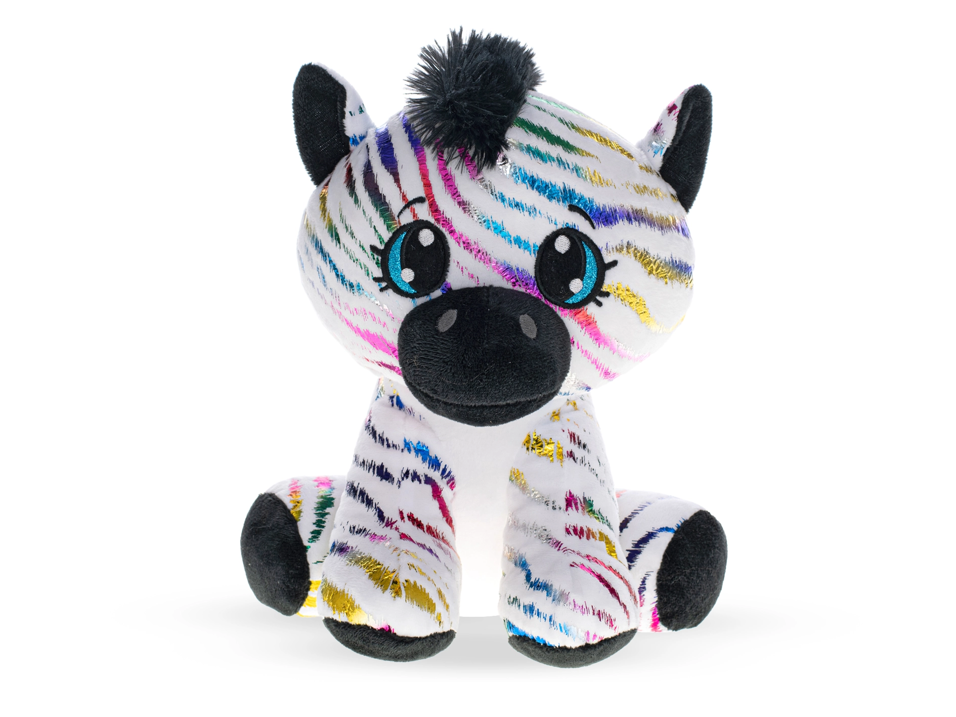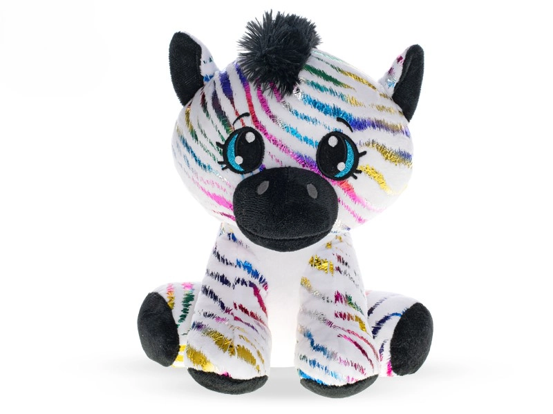 Prisrčna plišasta zebra v velikosti 24 cm v sedečem položaju bo razveselila otroke s svojim mehkim materialom in čarobnim mavričnim dizajnom. Bleščeči trakovi ji dajejo izviren videz, ki ga bodo vzljubili otroci vseh starosti. Primerna od rojstva, odlična kot darilo za dojenčke in starejše otroke.