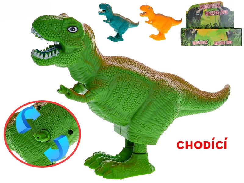Odkrijte zabavo z navijalnim dinozavrom T‑Rex Dinoworld dolžine 16 cm, ki po navijanju skače naprej. Izdelan iz vzdržljive plastike, na voljo v treh barvah in primeren za otroke od 3 let – idealen za male pustolovce in zbiratelje.