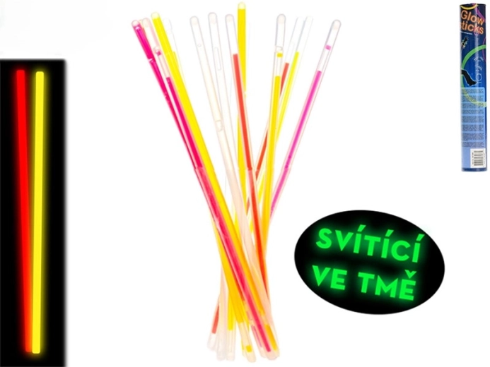 Popestrite vsako zabavo z kompletom 50 svetlečih paličic dolžine 20 cm. Aktivirajo se z enostavnim upogibanjem in potresanjem ter oddajajo močno svetlobo več ur. S 50 priloženimi konektorji zlahka ustvarite zapestnice, ogrlice in zabavne oblike. Barvna mešanica omogoča pisane kombinacije, priročna plastična tuba pa zagotavlja enostavno shranjevanje in prenašanje. Primerno za otroke od 3 let dalje.