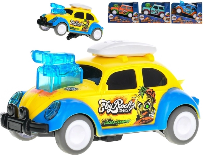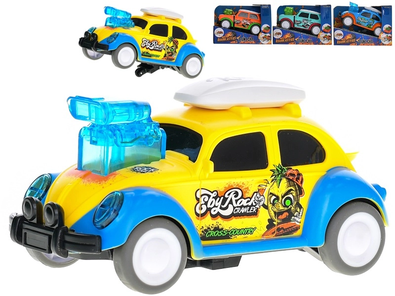 Zabavni avtomobilček na vztrajnik, ki med vožnjo izvaja plešoče gibe, navduši otroke z barvitim dizajnom in spodbuja njihovo domišljijo ter motoriko. Zahvaljujoč odpornemu plastiku in izbiri med več različicami karoserije ter barv ponuja dolgotrajno in ustvarjalno zabavo.