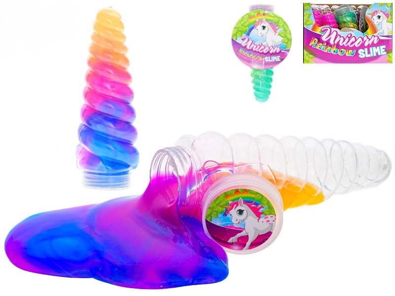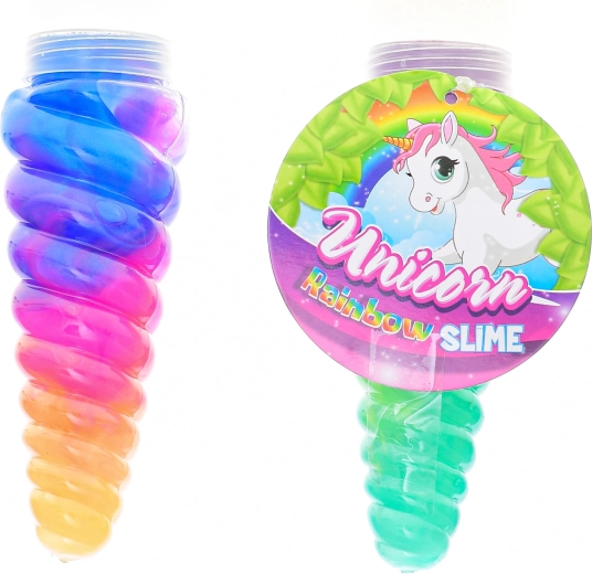 Odkrijte čarobnost in zabavo z igračo Rog samoroga z mavrično sluzjo! Prozoren rog dolžine 13,5 cm je napolnjen s 115 g mehke, večbarvne sluzi, ki je idealna za stiskanje, raztezanje in oblikovanje. Odlično spodbuja fino motoriko in senzorično zaznavanje otrok. Primerno od 3 let, na voljo v različnih barvnih kombinacijah.