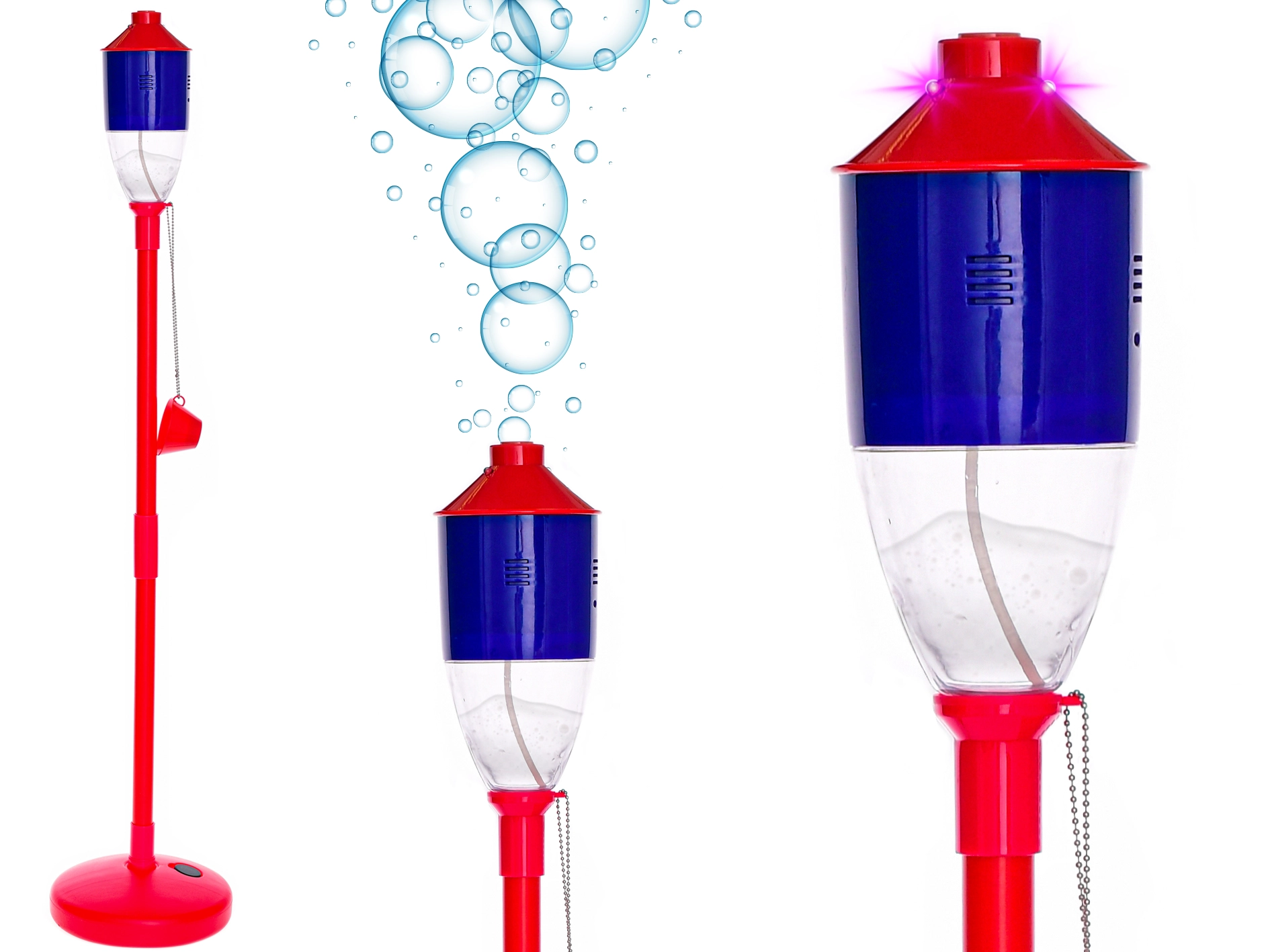 Ustvarite nepozabno zabavo na vrtu ali ob bazenu. Ta izvirni bublifuk, ki spominja na baklo, po polnjenju rezervoarja z raztopino in vklopu samodejno piha mehurčke in sveti, zato je idealen tudi za večerne zabave. Zahvaljujoč preprosti sestavi in praktičnemu delovanju na baterije je pripravljen za takojšnjo uporabo.