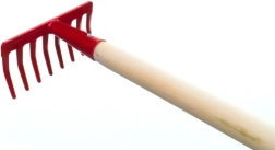 Močne kovinske konice zlahka opravijo z listjem in nežnim izravnavanjem zemlje, hkrati pa ostajajo lahke za otroke.