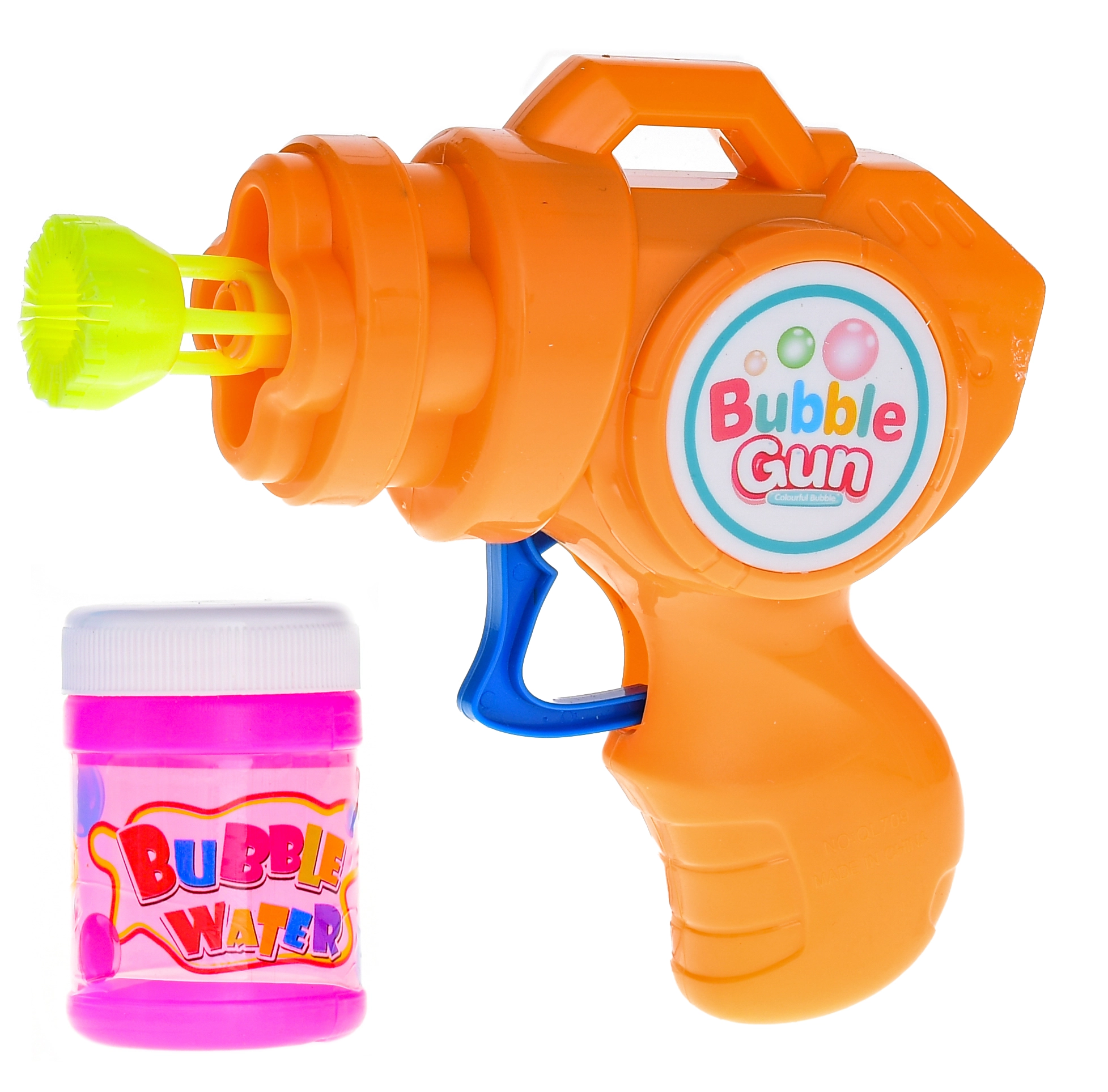 Zabavna pištola za milne mehurčke dolžine 13 cm za otroke od 3 let omogoča preprosto ustvarjanje mehurčkov brez potrebe po baterijah. Zahvaljujoč vztrajnostnemu mehanizmu je dovolj pritisniti na sprožilec in pištola začne ustvarjati množico mehurčkov. Priložena je 50 ml polnitev, zato se zabava lahko začne takoj po razpakiranju. Lahka plastična zasnova in kompaktne dimenzije so idealne za majhne otroške roke in igro na prostem.