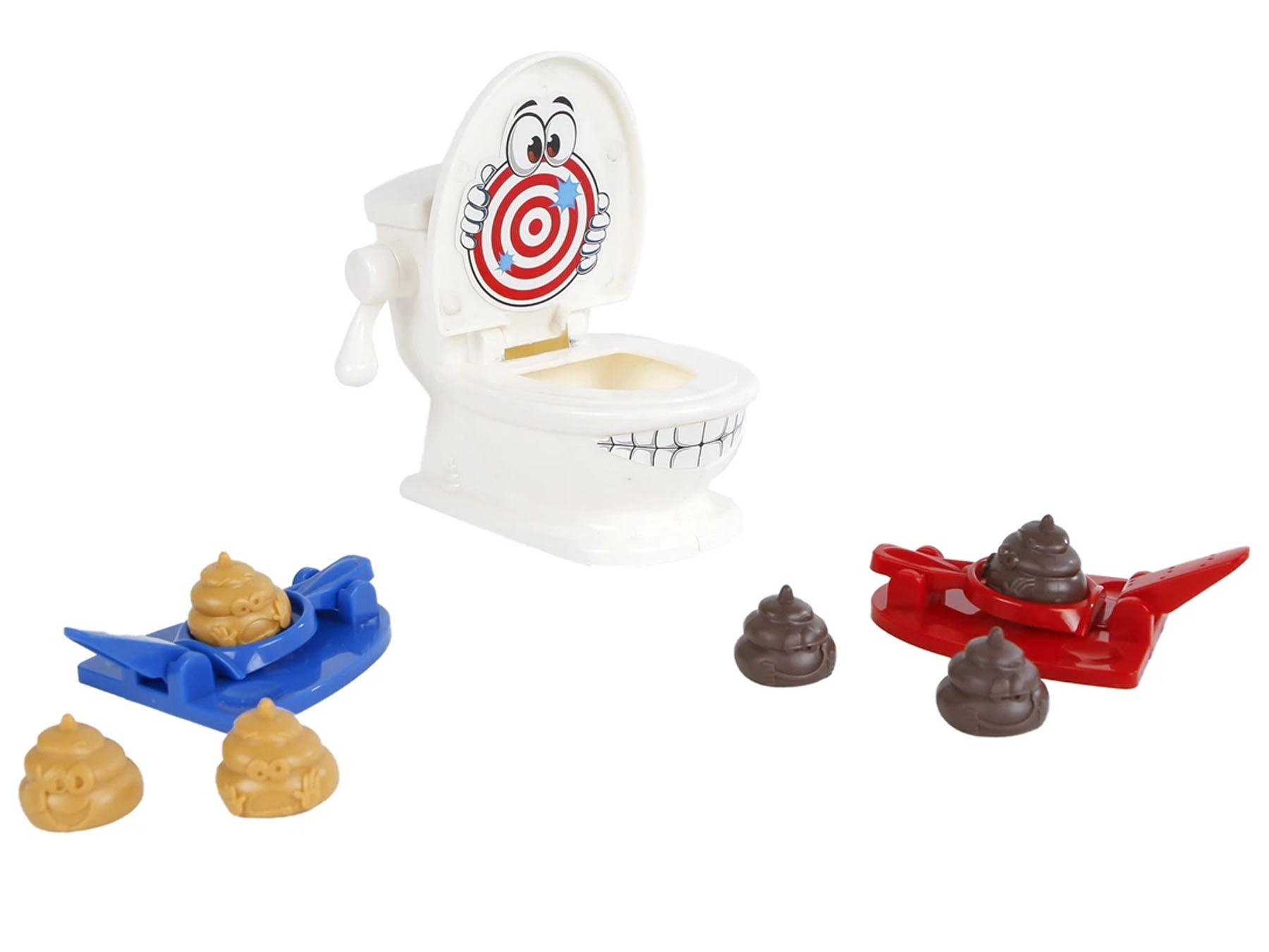- Pripravljeno za igro – v paketu stranišče, 2 izstreljevalnika in plastični kakci.