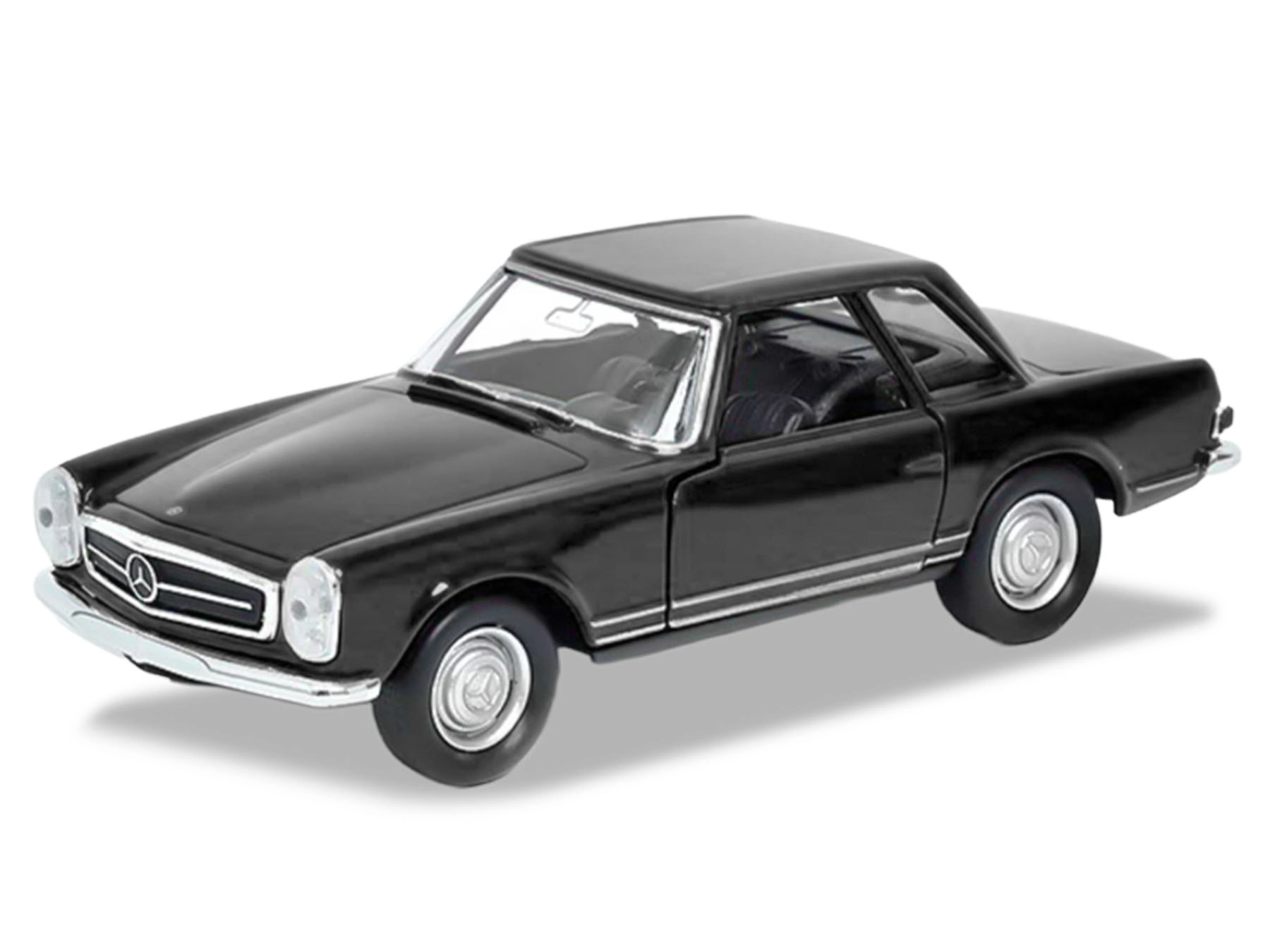 Podrobno izdelan kovinski model legendarnega vozila MERCEDES-BENZ 230 SL (1963) znamke Welly v merilu 1:34–39 navduši z realističnim videzom, odpirajočimi se stranskimi vrati in vzmetnim pogonom (pull-back). Kombinacija kovine in kakovostne plastike zagotavlja trpežnost in privlačen videz. Dolžina 12 cm, idealno za zbiratelje in otroke od 3. leta dalje, na voljo v rdeči, beli in črni barvi.