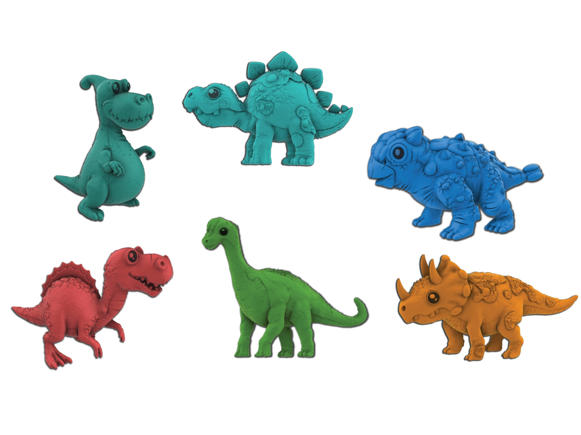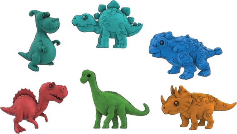 Jajca so na voljo v dveh barvah – rdeči in oranžni – ter naključno skrivajo eno izmed osmih vrst dinozavrov: T‑Rex, Brontozaur, Stegozaver, Triceratops, Parasaurolof, Ankilozaver, Spinozaver ali Pleziozaver. Konkretne barve in vrste ni mogoče izbrati vnaprej, kar zagotavlja element presenečenja pri vsakem nakupu.