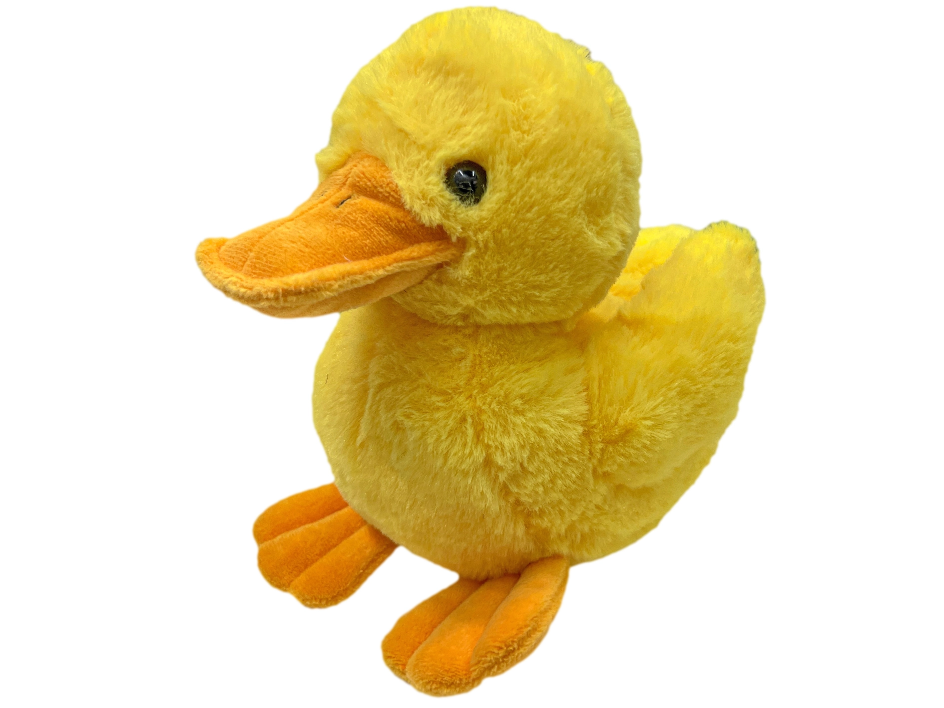 Ta rumena plišasta račka z oranžnimi detajli je zasnovana z poudarkom na varnosti in udobju otrok od 0 mesecev. Kompaktna velikost 19 cm in nizka teža jo naredita za popolno spremljevalko doma in na poti. Mehak, prijeten pliš vabi k crkljanju in pomirjanju, medtem ko sedeča izvedba ohranja igračo stabilno.
