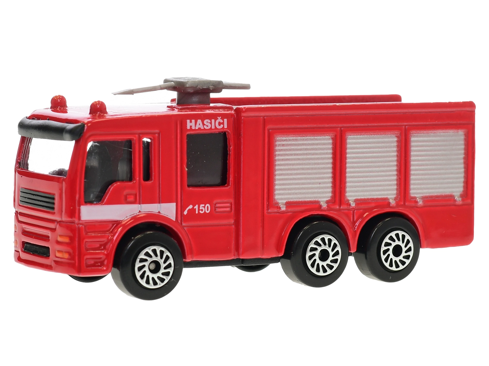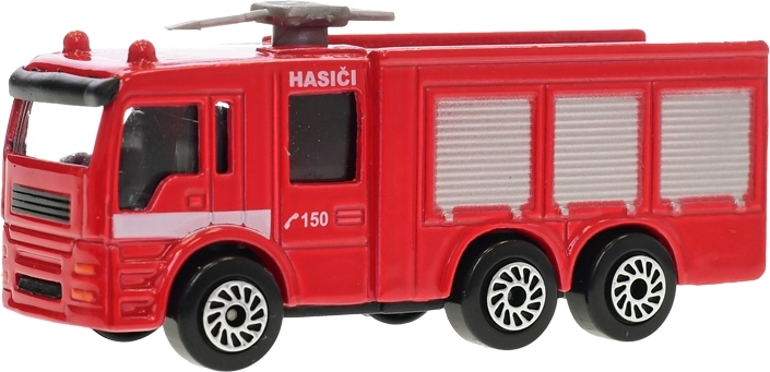 Avtomobilček s kolesi v prostem teku je pripravljen na akcijo takoj po razpakiranju. Embalaža na kartici s češko oblikovno podobo »Hasiči 150« bo razveselila male oboževalce reševalcev, zaradi kompaktnih mer pa se zlahka prilega v nahrbtnik ali predal.