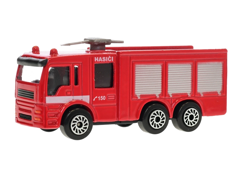 Podrobno izdelan gasilski avtomobilček dolžine 8 cm iz kombinacije kovine in plastike razveseli male junake že od 3. leta dalje. Ponuja dve akcijski različici – vodni top ali izvlečno lestev – za realistične intervencije. Prosti tek koles zagotavlja gladko vožnjo in takojšno zabavo, medtem ko kompaktna embalaža s češkim motivom »Hasiči 150« olajša shranjevanje in prenašanje.