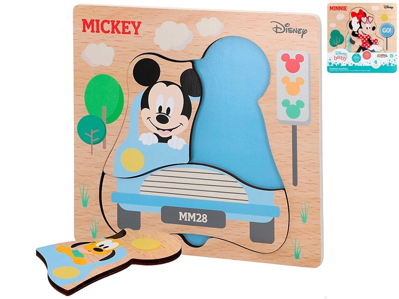 Ljubka lesena sestavljanka z motivi DISNEY Mickey in Minnie je idealna prva sestavljanka za otroke od 12 mesecev dalje. Vsebuje 4 velike kosčke za enostaven prijem, spodbuja fino motoriko, koordinacijo oko–roka ter učenje oblik in barv. Izdelano iz naravnega trajnostnega lesa za varno in dolgotrajno zabavo. Motiv je dobavljen naključno glede na zalogo.