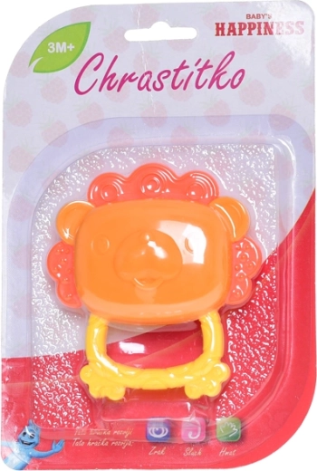 Ta pametna kombinacija ropotuljice in grizala v veselem levčkovem dizajnu otroke pritegne z barvami in zvokom. Lahka in enostavno oprijemljiva zasnova je prilagojena majhnim otroškim rokam, medtem ko mehki deli zagotavljajo olajšanje občutljivim dlesnim ob izraščanju prvih zobkov.